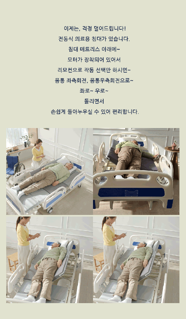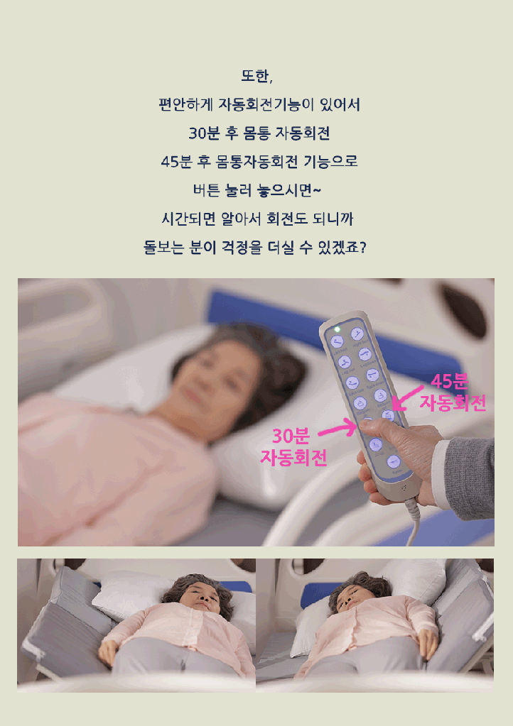 이러한 수고로움을 덜어줄수 있는 자동자세변환침대를 이용하면, 많은 도움이 되실 겁니다.